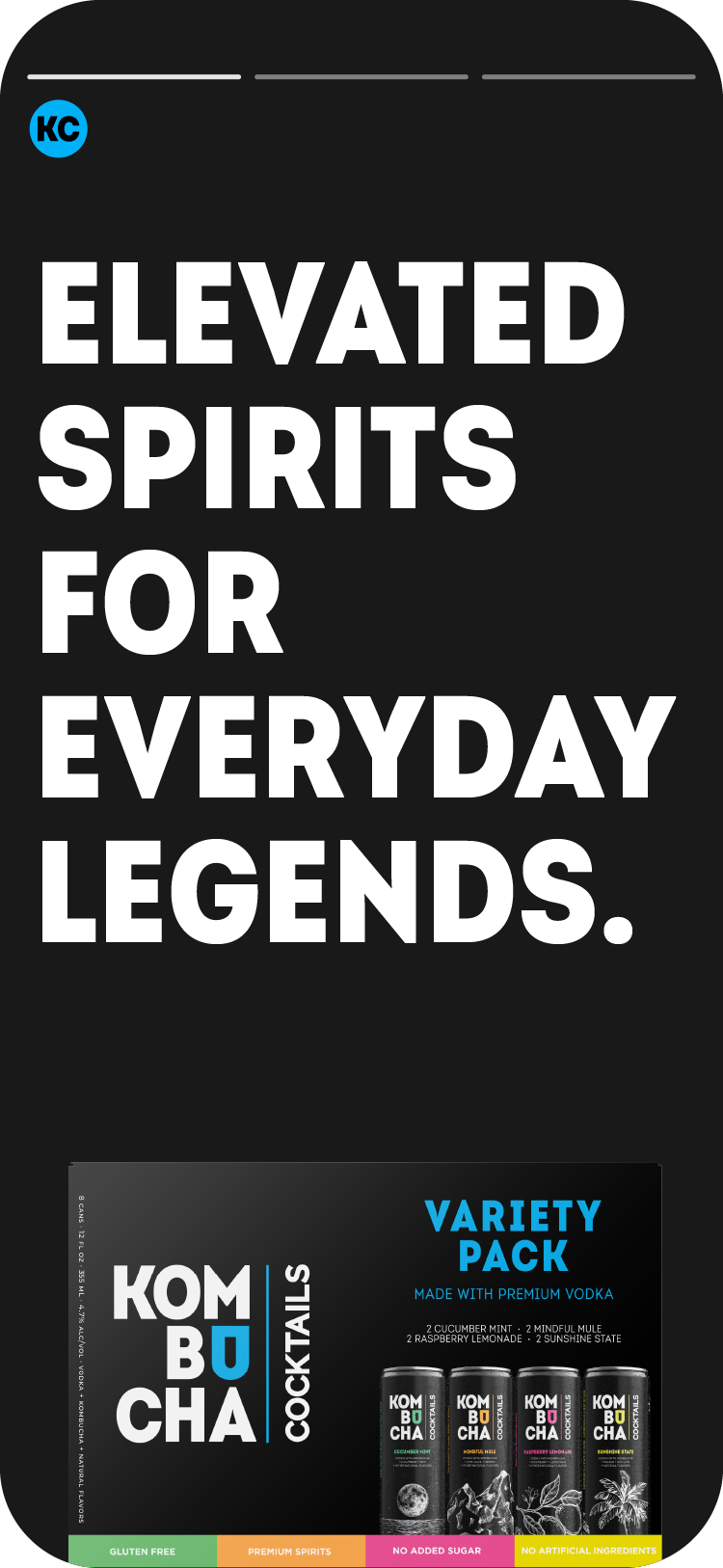 Meet Kombucha Cocktails, the first and only RTD cocktail made with a refined Fermented Tea base. It took years to find the perfect Kombucha — zero sugar, zero calories, and smooth enough to serve as a high-quality mixer that lifts flavor, not calories. We combine that clean, naturally effervescent base with premium vodka and all-natural ingredients to create a truly unique drinking experience. Meet kombucha that’s so crisp, refreshing and expertly balanced you’ll question if it’s real. It is. And yes, it came out of a can.